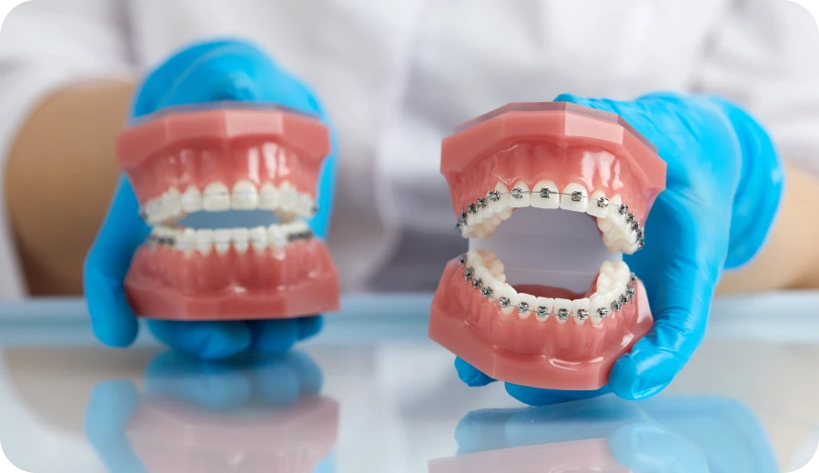 La différence principale entre les deux types tient au matériau : les brackets métalliques sont fabriqués en acier inoxydable, tandis que les brackets en céramique sont conçus pour se fondre davantage avec la couleur naturelle des dents.
